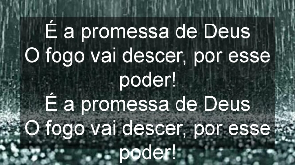 - É a promessa de DeusO fogo vai descer, por esse poder!É a promessa de DeusO fogo vai descer, por esse poder!