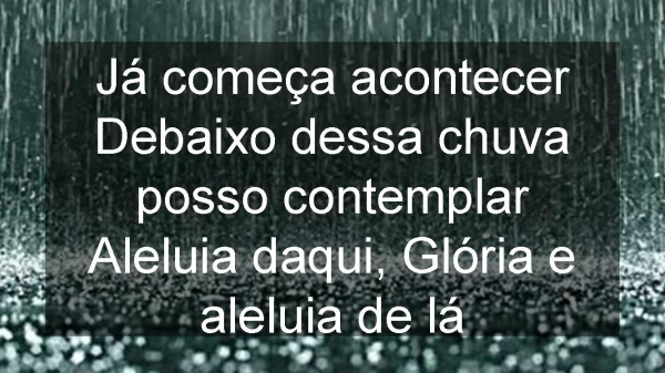 - Já começa acontecerDebaixo dessa chuva posso contemplarAleluia daqui, Glória e aleluia de lá