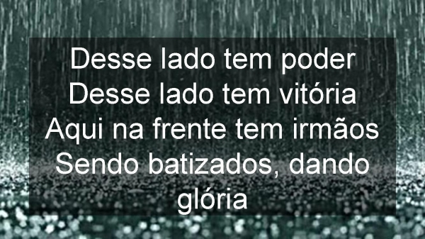 - Desse lado tem poderDesse lado tem vitóriaAqui na frente tem irmãosSendo batizados, dando glória