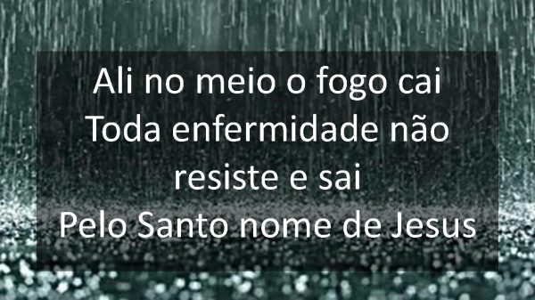 - Ali no meio o fogo caiToda enfermidade não resiste e saiPelo Santo nome de Jesus