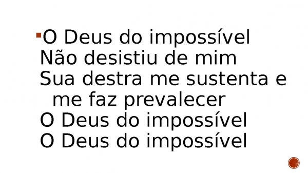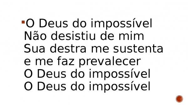 - O Deus do impossívelNão desistiu de mimSua destra me sustenta e me faz prevalecerO Deus do impossívelO Deus do impossível