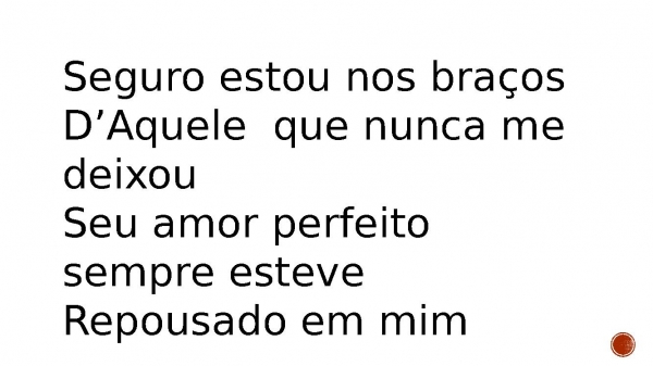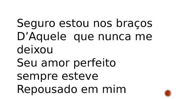- Seguro estou nos braçosD’Aquele que nunca me deixouSeu amor perfeito sempre esteveRepousado em mim