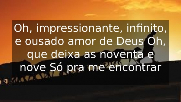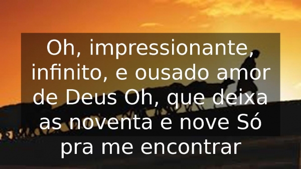 - Oh, impressionante, infinito, e ousado amor de Deus Oh, que deixa as noventa e nove Só pra me encontrar