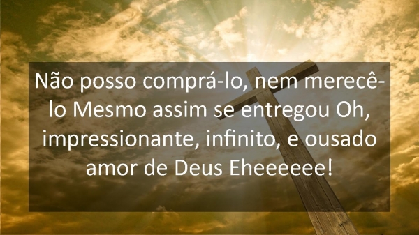 - Não posso comprá-lo, nem merecê-lo Mesmo assim se entregou Oh, impressionante, infinito, e ousado amor de Deus Eheeeeee!