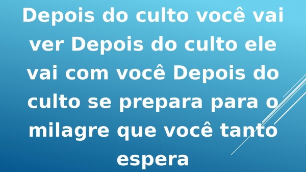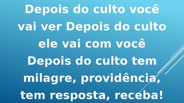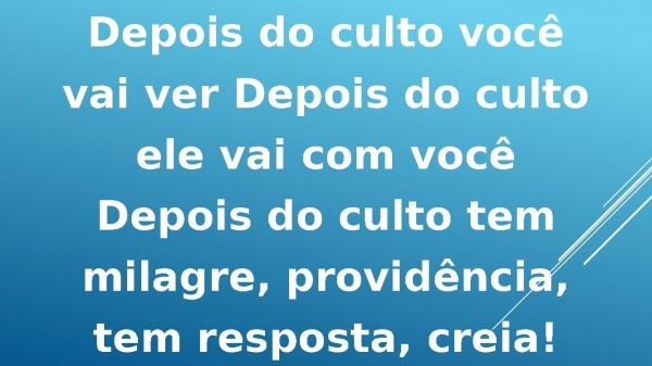- Depois do culto você vaiver Depois do culto elevai com você Depois doculto se prepara para omilagre que você tantoespera