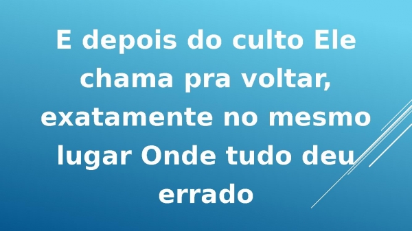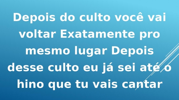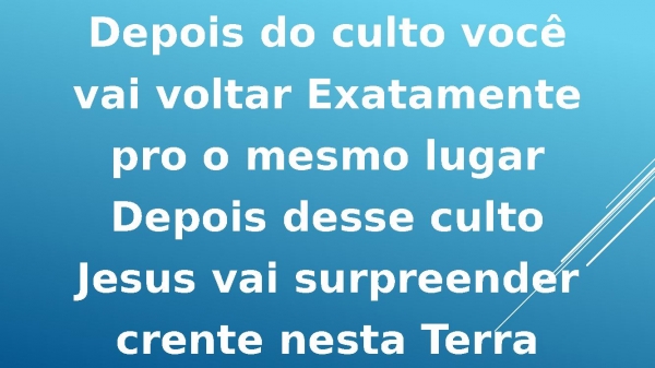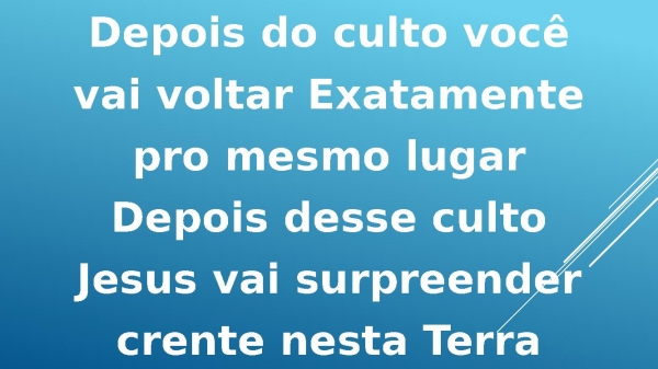 - Depois do culto vocêvai voltar Exatamentepro mesmo lugarDepois desse cultoJesus vai surpreendercrente nesta Terra