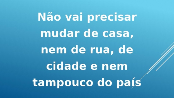 - Não vai precisarmudar de casa,nem de rua, decidade e nemtampouco do país