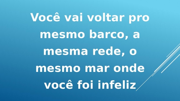 - Você vai voltar promesmo barco, amesma rede, omesmo mar ondevocê foi infeliz