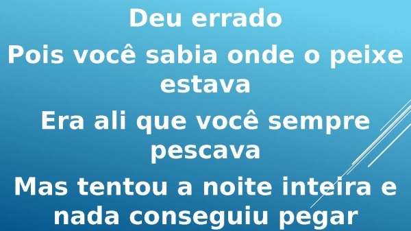 - Deu erradoPois você sabia onde o peixe estavaEra ali que você sempre pescavaMas tentou a noite inteira e nada conseguiu pegar