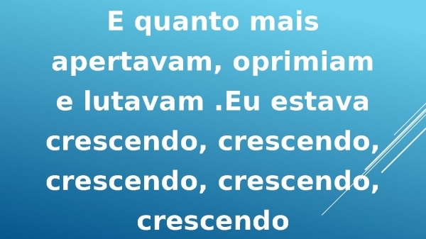 - E quanto maisapertavam, oprimiame lutavam .Eu estavacrescendo, crescendo,crescendo, crescendo,crescendo