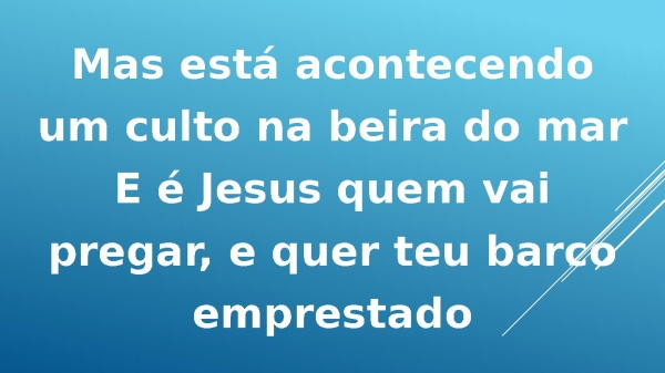 - Mas está acontecendoum culto na beira do marE é Jesus quem vaipregar, e quer teu barcoemprestado