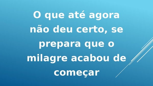 - O que até agoranão deu certo, seprepara que omilagre acabou decomeçar