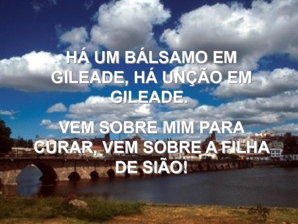 - HÁ UM BÁLSAMO EM GILEADE, HÁ UNÇÃO EM GILEADE. VEM SOBRE MIM PARA CURAR, VEM SOBRE A FILHA DE SIÃO!