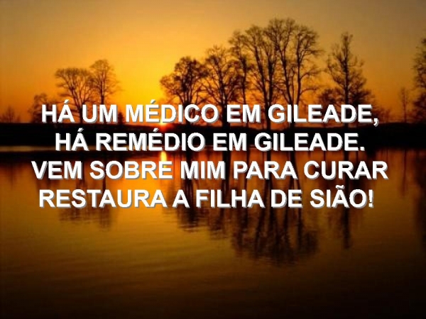 - HÁ UM MÉDICO EM GILEADE, HÁ REMÉDIO EM GILEADE. VEM SOBRE MIM PARA CURAR RESTAURA A FILHA DE SIÃO!