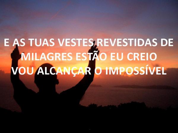 - E AS TUAS VESTES REVESTIDAS DEMILAGRES ESTÃO EU CREIOVOU ALCANÇAR O IMPOSSÍVEL