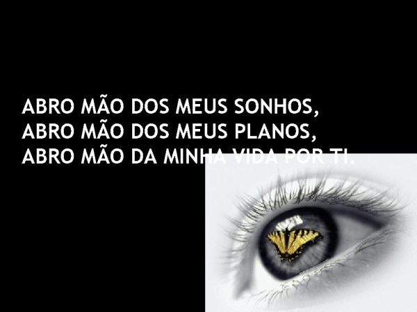 - ABRO MÃO DOS MEUS SONHOS,ABRO MÃO DOS MEUS PLANOS,ABRO MÃO DA MINHA VIDA POR TI.