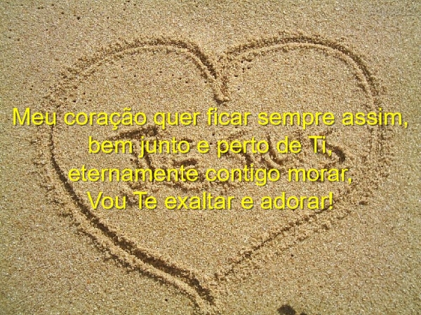 - Meu coração quer ficar sempre assim,bem junto e perto de Ti,eternamente contigo morar,Vou Te exaltar e adorar!