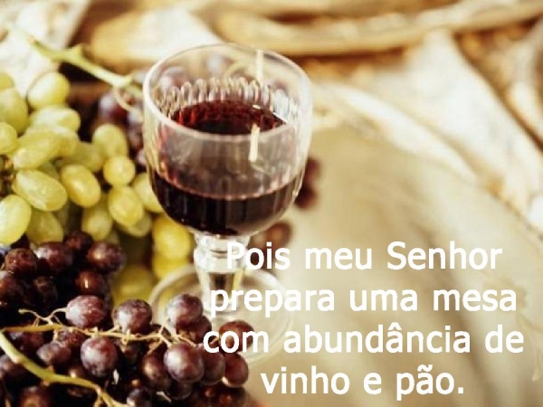 - Pois meu Senhor prepara uma mesa com abundância de vinho e pão.