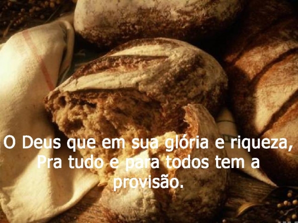 - O Deus que em sua glória e riqueza,Pra tudo e para todos tem a provisão.
