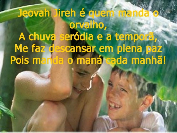 - Jeovah Jireh é quem manda o orvalho,A chuva seródia e a temporã,Me faz descansar em plena pazPois manda o maná cada manhã!