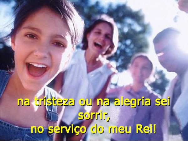 - na tristeza ou na alegria sei sorrir,no serviço do meu Rei!