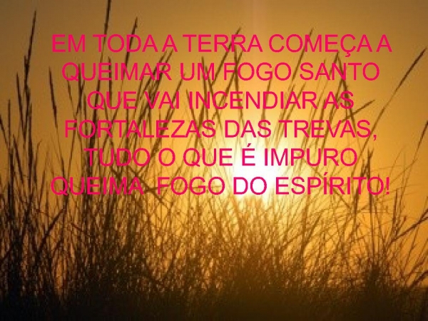 - EM TODA A TERRA COMEÇA A QUEIMAR UM FOGO SANTO QUE VAI INCENDIAR AS FORTALEZAS DAS TREVAS, TUDO O QUE É IMPURO QUEIMA FOGO DO ESPÍRITO!