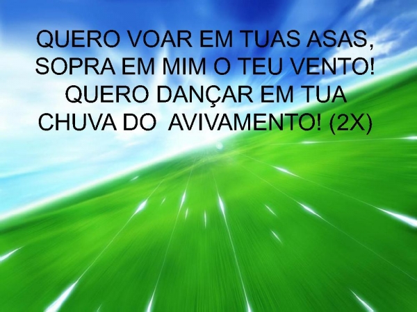 - QUERO VOAR EM TUAS ASAS, SOPRA EM MIM O TEU VENTO! QUERO DANÇAR EM TUA CHUVA DO AVIVAMENTO! (2X)