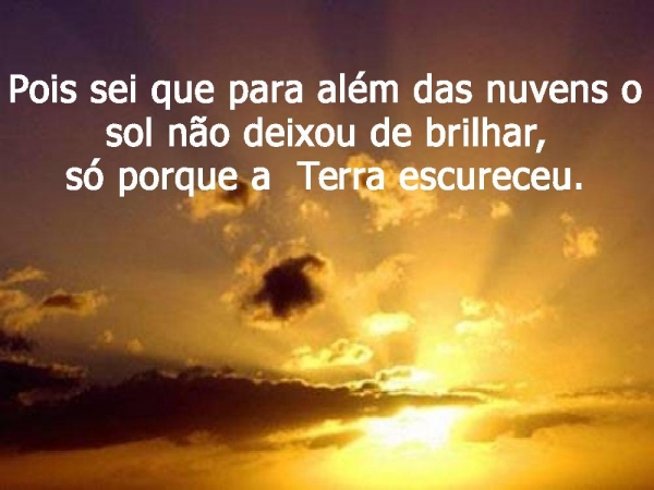 - Pois sei que para além das nuvens o sol não deixou de brilhar,só porque a Terra escureceu.