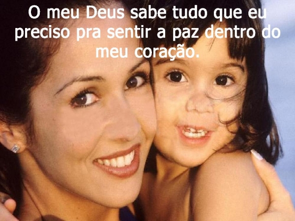 - O meu Deus sabe tudo que eu preciso pra sentir a paz dentro do meu coração.