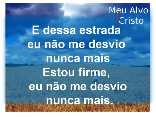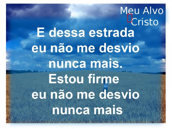 - E dessa estrada eu não me desvio nunca mais Estou firme, eu não me desvio nunca mais.Meu Alvo Cristo