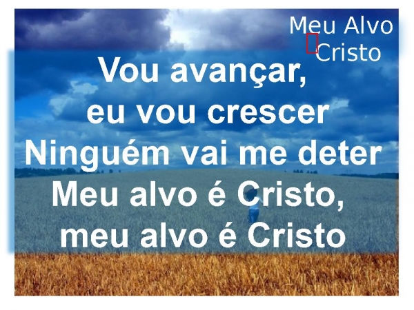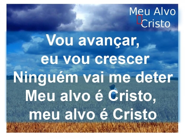 - Vou avançar, eu vou crescer Ninguém vai me deter Meu alvo é Cristo, meu alvo é CristoMeu Alvo Cristo
