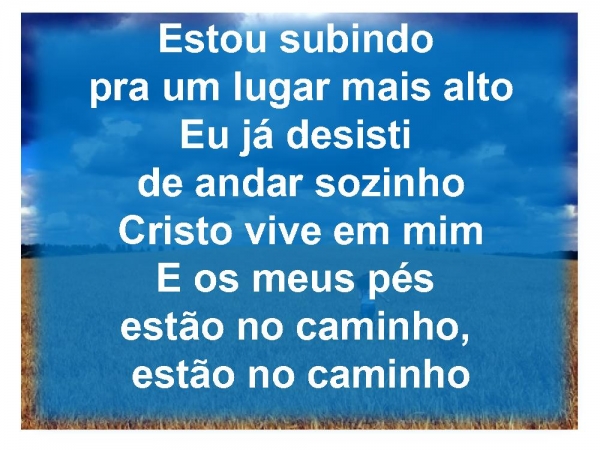 - Estou subindo pra um lugar mais alto Eu já desisti de andar sozinho Cristo vive em mim E os meus pés estão no caminho, estão no caminho