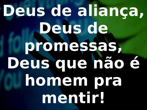 - Deus de aliança, Deus de promessas,Deus que não é homem pra mentir!