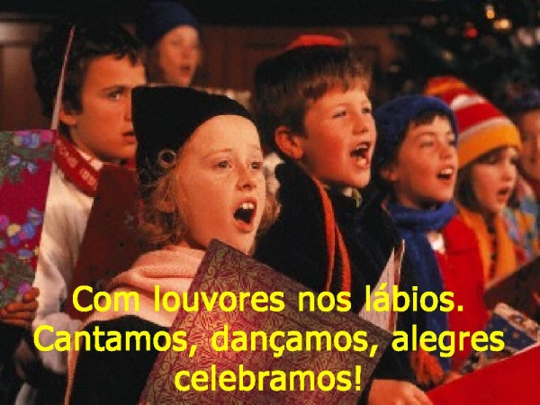 - Com louvores nos lábios.Cantamos, dançamos, alegres celebramos!