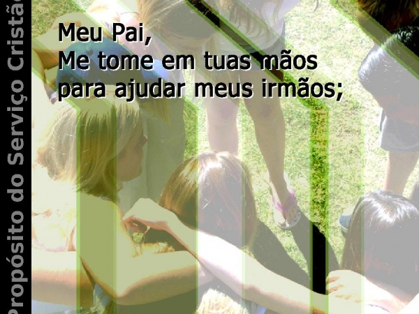 - Propósito do Serviço Cristão Meu Pai,Me tome em tuas mãospara ajudar meus irmãos;