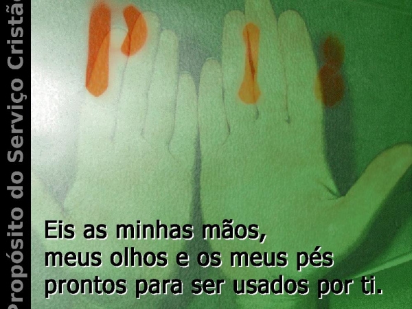 - Eis as minhas mãos,meus olhos e os meus pésprontos para ser usados por ti.Propósito do Serviço Cristão
