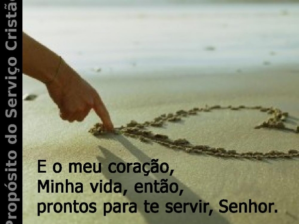 - E o meu coração,Minha vida, então,prontos para te servir, Senhor.Propósito do Serviço Cristão