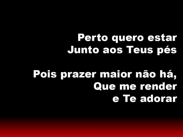 - Perto quero estarJunto aos Teus pésPois prazer maior não há, Que me render e Te adorar