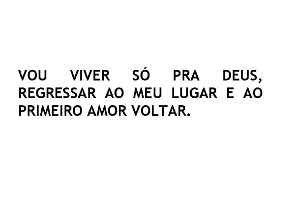 - VOU VIVER SÓ PRA DEUS, REGRESSAR AO MEU LUGAR E AO PRIMEIRO AMOR VOLTAR.