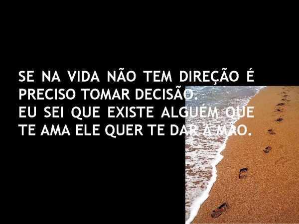 - SE NA VIDA NÃO TEM DIREÇÃO É PRECISO TOMAR DECISÃO.EU SEI QUE EXISTE ALGUÉM QUE TE AMA ELE QUER TE DAR A MÃO.