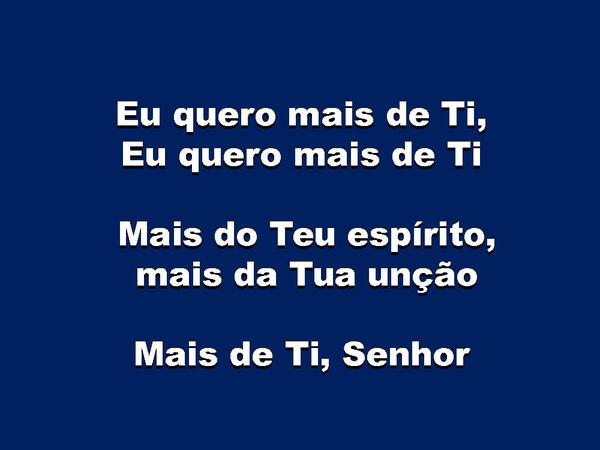 - Eu quero mais de Ti, Eu quero mais de Ti Mais do Teu espírito, mais da Tua unção Mais de Ti, Senhor