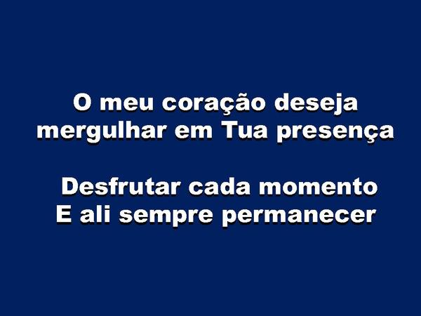 - O meu coração deseja mergulhar em Tua presença Desfrutar cada momento E ali sempre permanecer