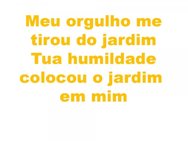 - Meu orgulho me tirou do jardimTua humildade colocou o jardim em mim