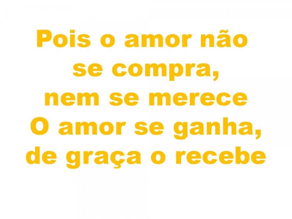 - Pois o amor não se compra,nem se mereceO amor se ganha,de graça o recebe