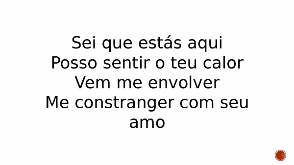 - Sei que estás aquiPosso sentir o teu calorVem me envolverMe constranger com seu amo
