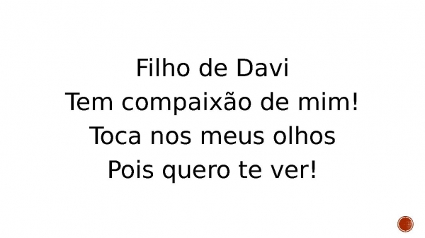 - Filho de DaviTem compaixão de mim!Toca nos meus olhosPois quero te ver!