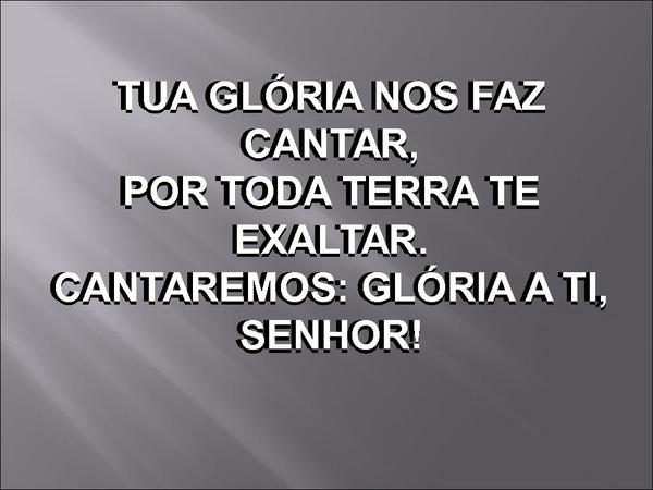 - TUA GLÓRIA NOS FAZ CANTAR,POR TODA TERRA TE EXALTAR.CANTAREMOS: GLÓRIA A TI, SENHOR!TUA GLÓRIA NOS FAZ CANTAR,POR TODA TERRA TE EXALTAR.CANTAREMOS: GLÓRIA A TI, SENHOR!