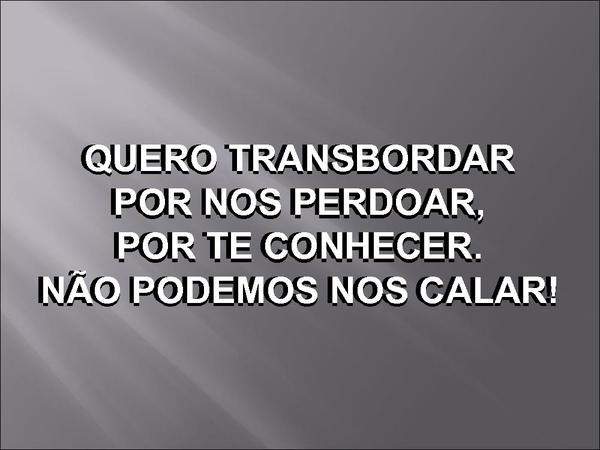 - QUERO TRANSBORDARPOR NOS PERDOAR,POR TE CONHECER.NÃO PODEMOS NOS CALAR!QUERO TRANSBORDARPOR NOS PERDOAR,POR TE CONHECER.NÃO PODEMOS NOS CALAR!