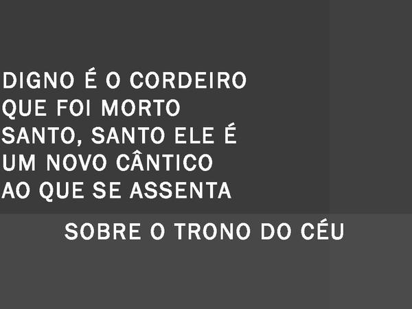 - DIGNO É O CORDEIRO QUE FOI MORTO SANTO, SANTO ELE É UM NOVO CÂNTICO AO QUE SE ASSENTA SOBRE O TRONO DO CÉU