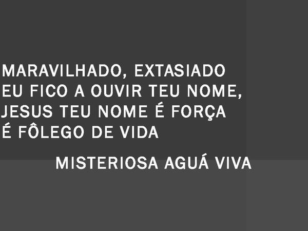 - MARAVILHADO, EXTASIADO EU FICO A OUVIR TEU NOME, JESUS TEU NOME É FORÇA É FÔLEGO DE VIDA MISTERIOSA AGUÁ VIVA